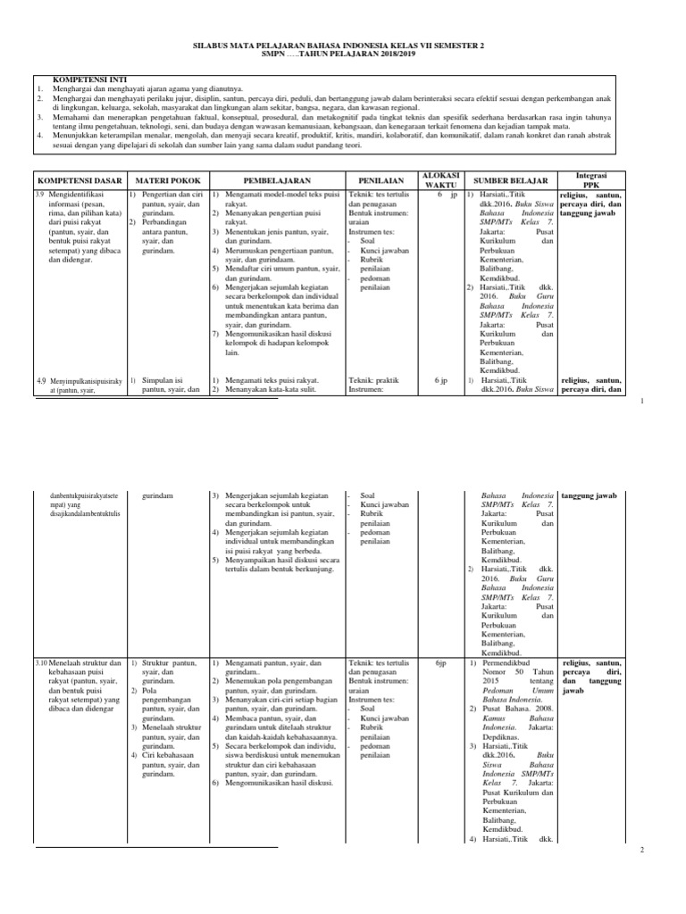 Silakan unduh bagi yang membutuhkan. Rpp bahasa indonesia kelas 7 semester genap. Silabus pendidikan kesetaraan berdasarkan kurikulum 2013 pencerahan pendidikan nonformal. Folge deiner leidenschaft bei ebay! Bagi bapak dan ibu guru yang belum memiliki perangkat silabus pastinya akan berusaha untuk mencari format silabus melalui media internet, oleh sebab itulah pada artikel kali ini saya akan kembali membagikan perangkat pembelajaran silabus untuk mata pelajaran bahasa indonesia kelas 7 smp kurikulum 2013 revisi 2019.
